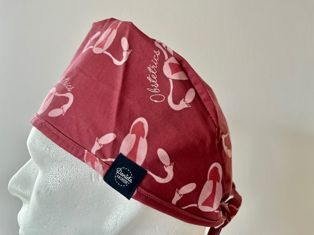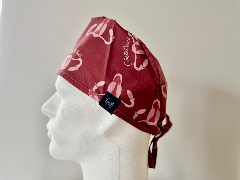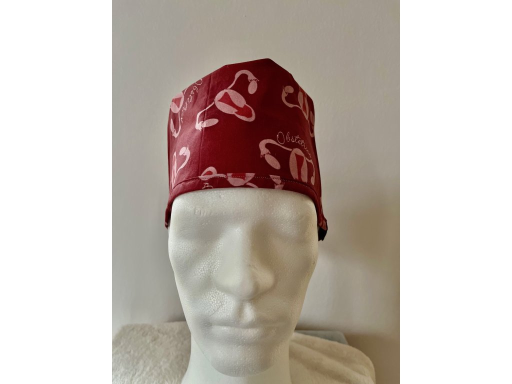 Operační čepice je vyrobena z kvalitní 100 % pevné bavlny. S motivem dělohy a vaječníků v barvě bordó.
