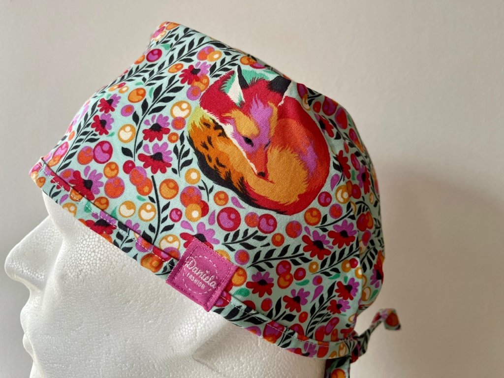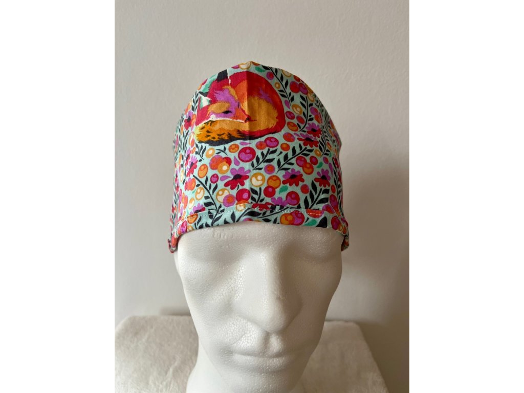 Operační čepice je vyrobena z kvalitní 100 % bavlny s motivem lišek v pestrobarevném provedení.