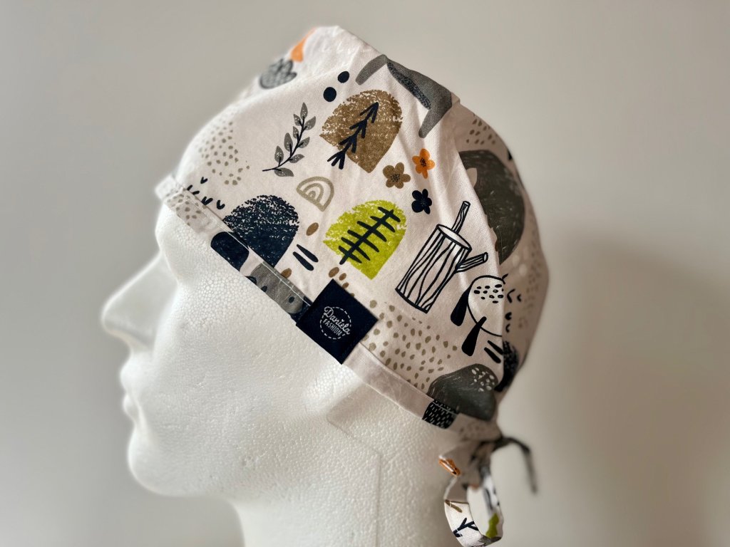 Operační čepice je vyrobena z kvalitní 100 % pevné bavlny s motivem losů a lesa v béžovém provedení.