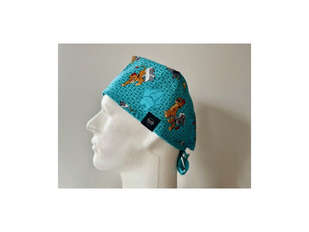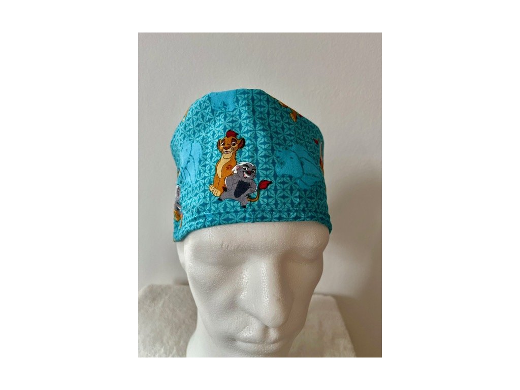 Operační čepice je vyrobena z kvalitní 100 % bavlny s motivem Lvího krále na tyrkysovém pozadí.