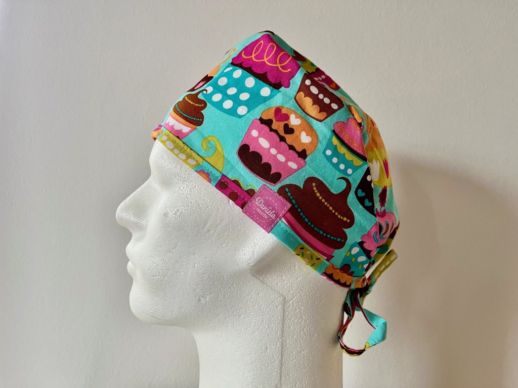 Operační čepice je vyrobena z kvalitní 100 % bavlny s motivem barevných mufinů.