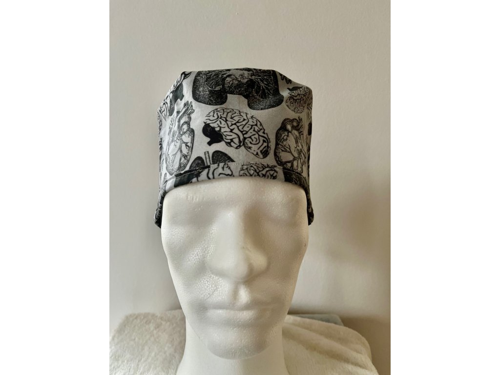 Operační čepice je vyrobena z kvalitní 100 % pevné bavlny. S motivem srdce, plic, mozku a dalších orgánů v černo- šedém provedení.