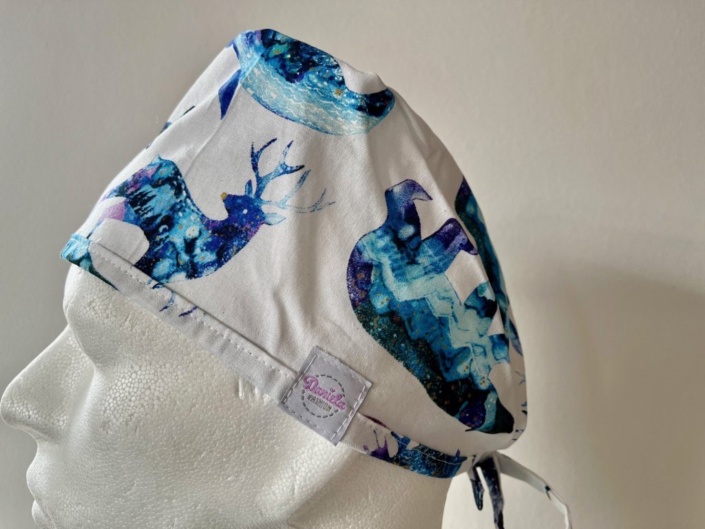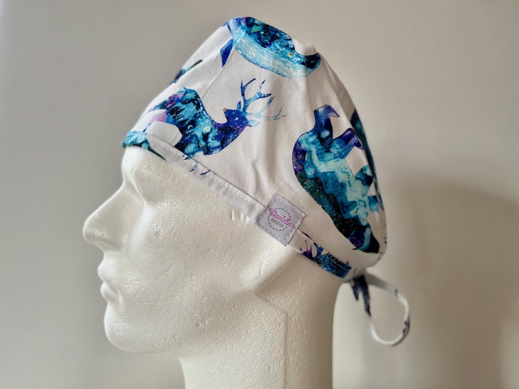 Operační čepice je vyrobena z kvalitní 100 % bavlny s motivem ledního medvěda, velryby, jelena a dalších zvířat na bílém pozadí.