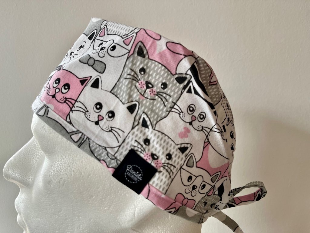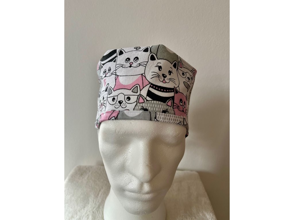 Operační čepice je vyrobena z kvalitní 100 % pevné bavlny s motivem koček.