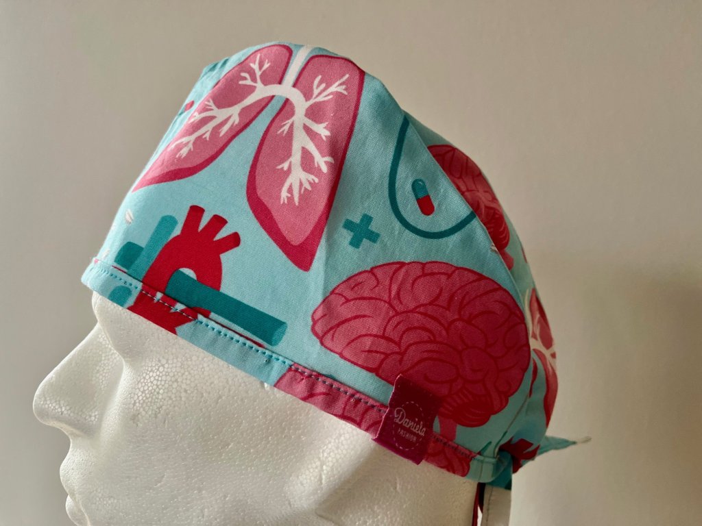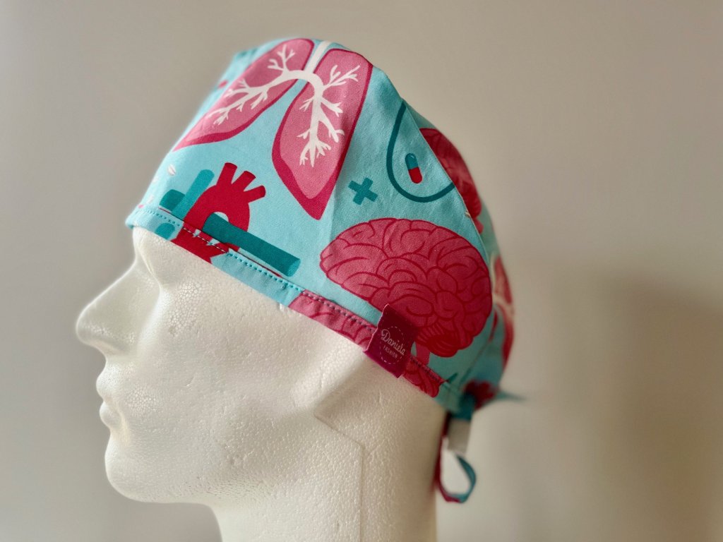 Operační čepice je vyrobena z kvalitní 100 % pevné bavlny. S motivem srdce a plic v růžovo- modrém provedení.