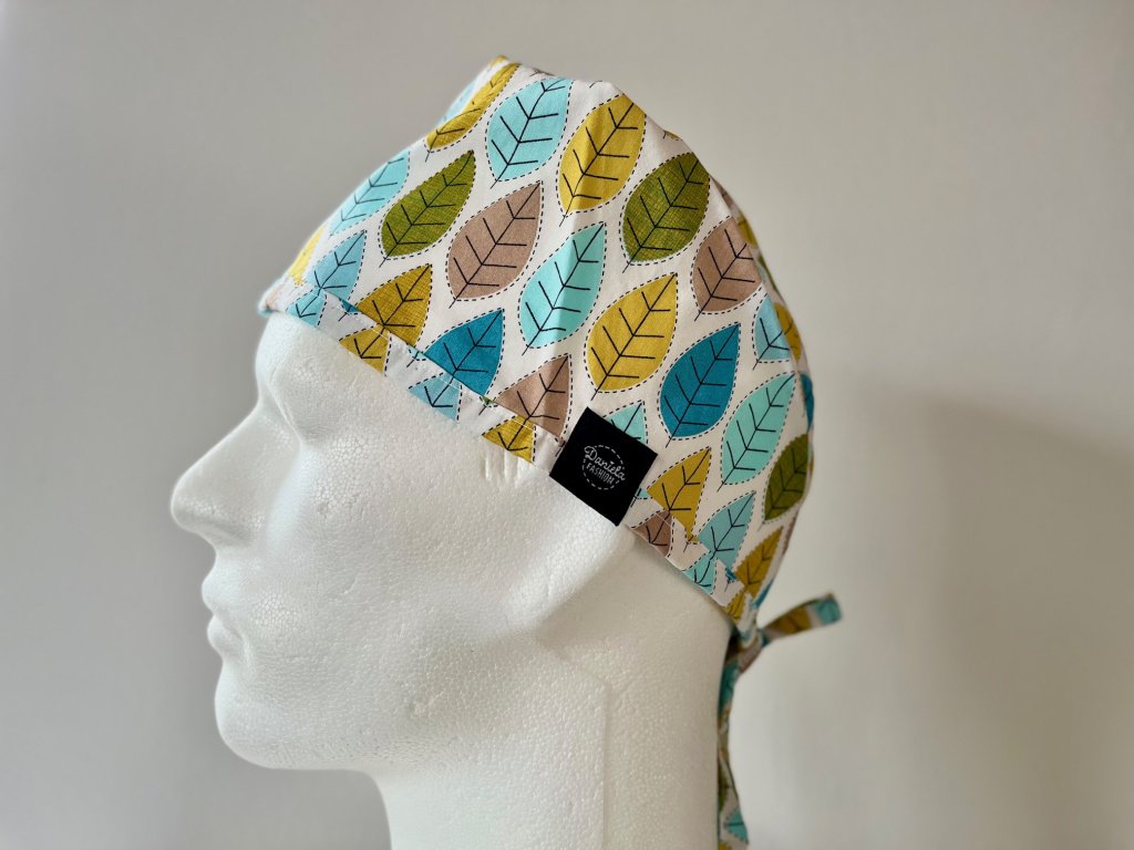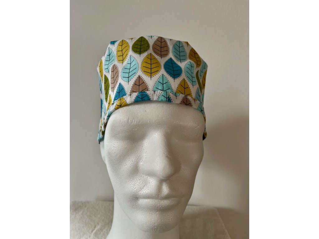 Operační čepice je vyrobena z kvalitní 100 % bavlny s motivem zelených a modrých listů.
